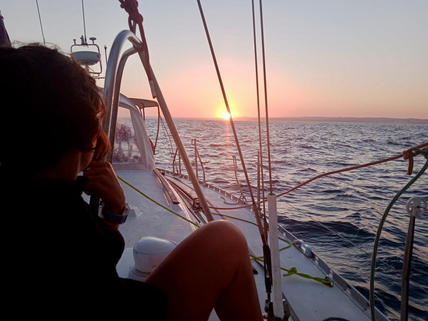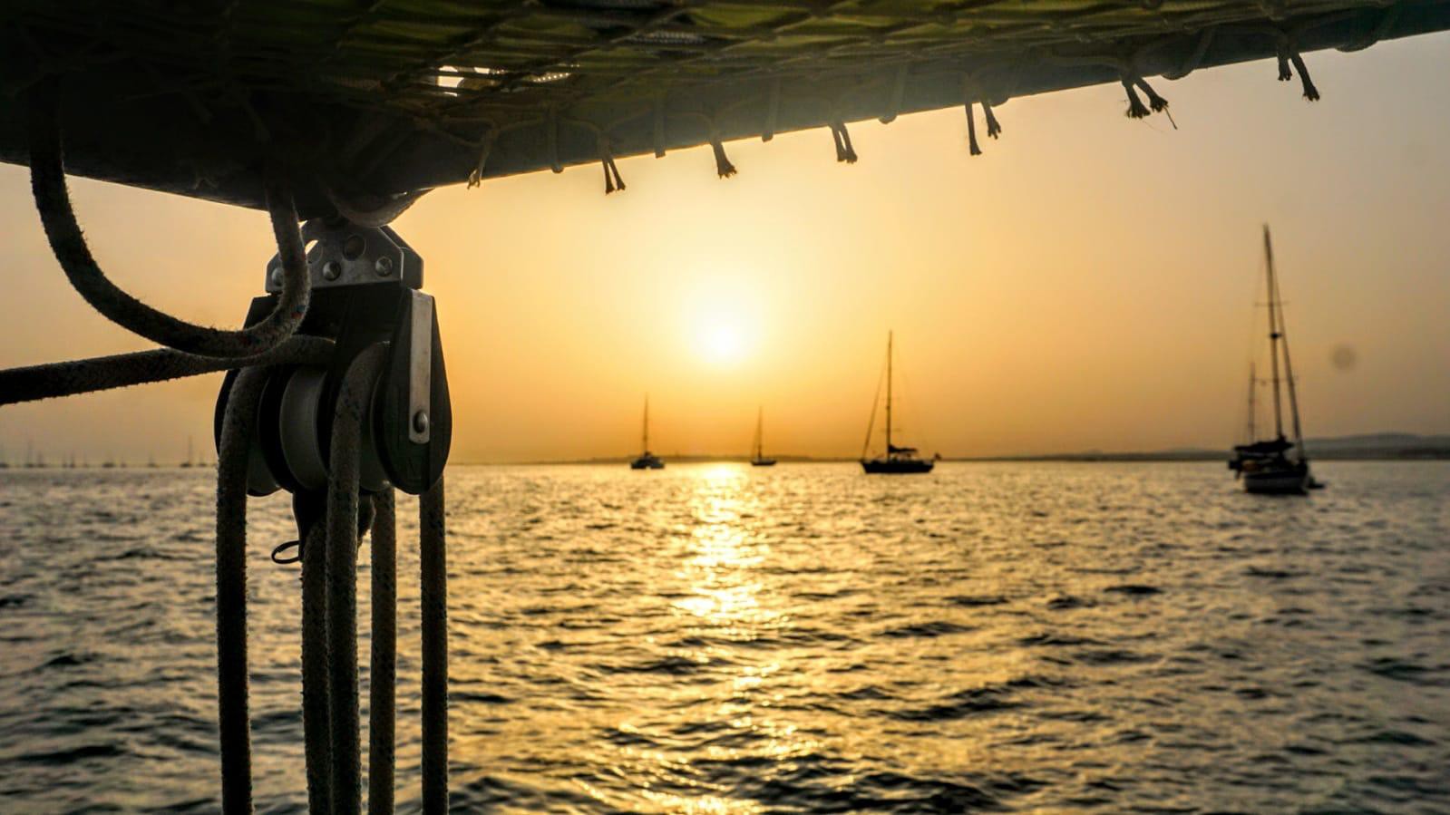 Hoy zarparemos a media mañana para poner rumbo de vuelta al Estuario del Guadiana. Durante esta intensa jornada de navegación a todo trapo podremos observar, con suerte, aves marinas y delfines surcando las olas frente a Praia Verde. Llegaremos con la puesta de sol, tonos rojos y violetas en poniente, azules intensos en levante… ¡Todo un espectáculo para nuestros sentidos! Dependiendo de las condiciones del tiempo y las mareas pasaremos la noche fondeados en el río o atracados en el puerto deportivo de Vila Real de Santo António o Ayamonte, dos poblaciones muy animadas y con mucho encanto.